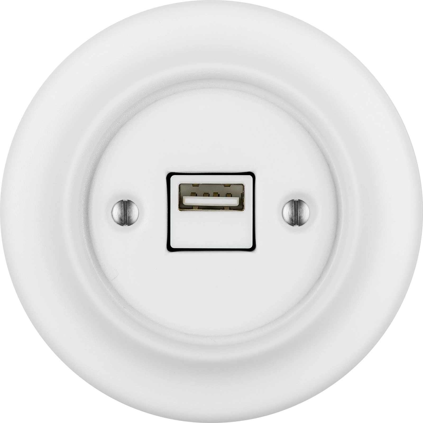 Carregador USB de porcelana com superfície branca fosca. A superfície é altamente resistente e estabilidade de cor. Certificado CE de conformidade. Tampa decorativa. Garantia de 50 anos!