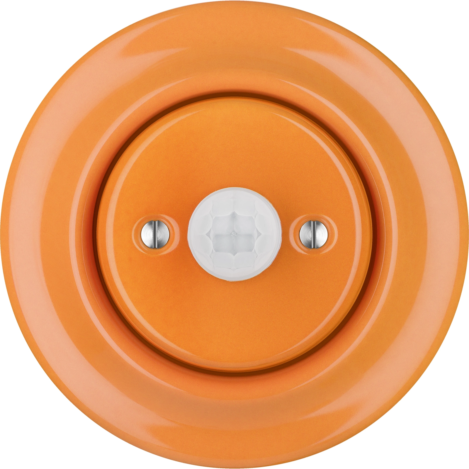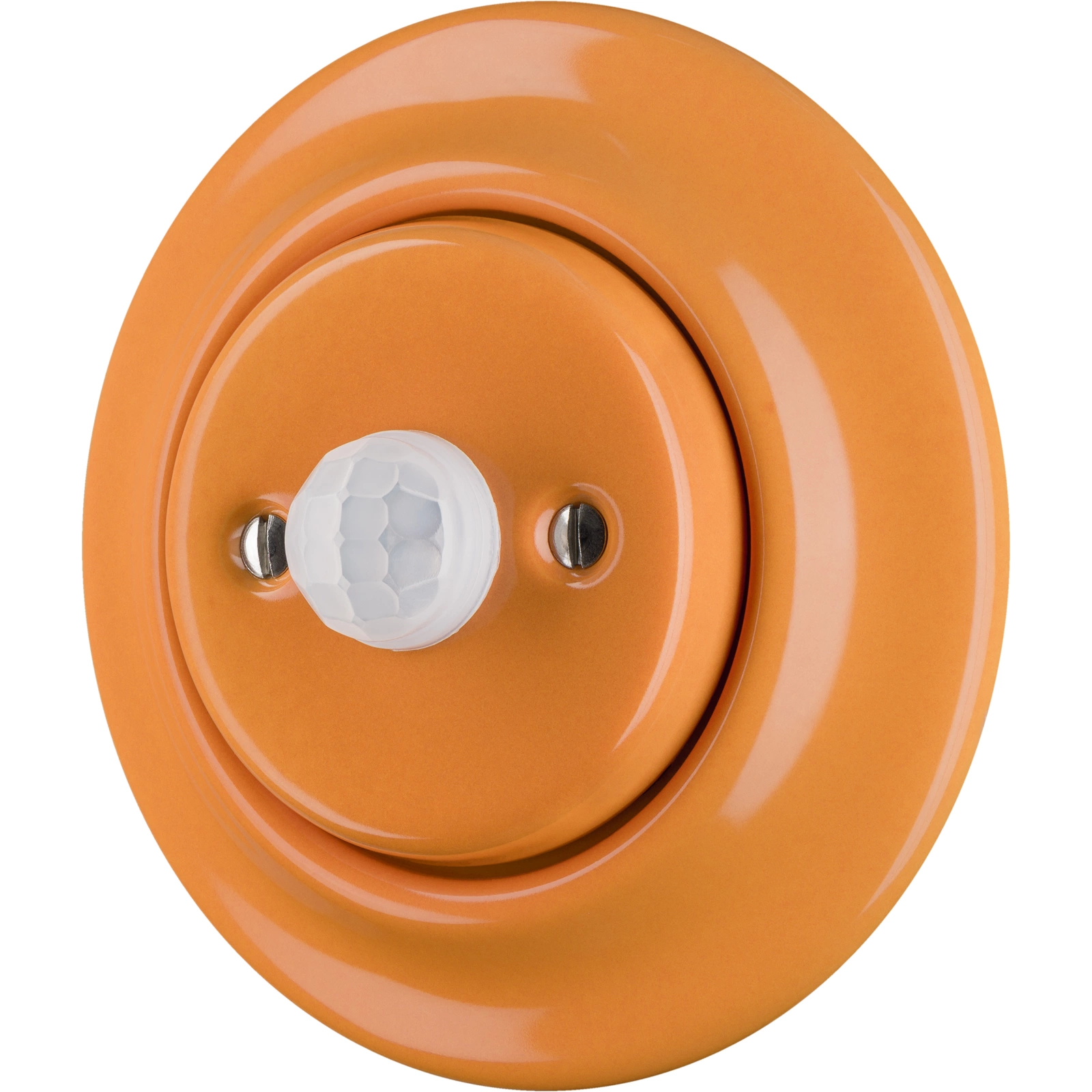 Sensor de movimento inspirada no design retro, com superfície esmaltada. Na cor em bege. Altamente resistente à abrasão e à poeira. Certificado CE de conformidade. Tampa decorativa. Garantia de 50 anos!